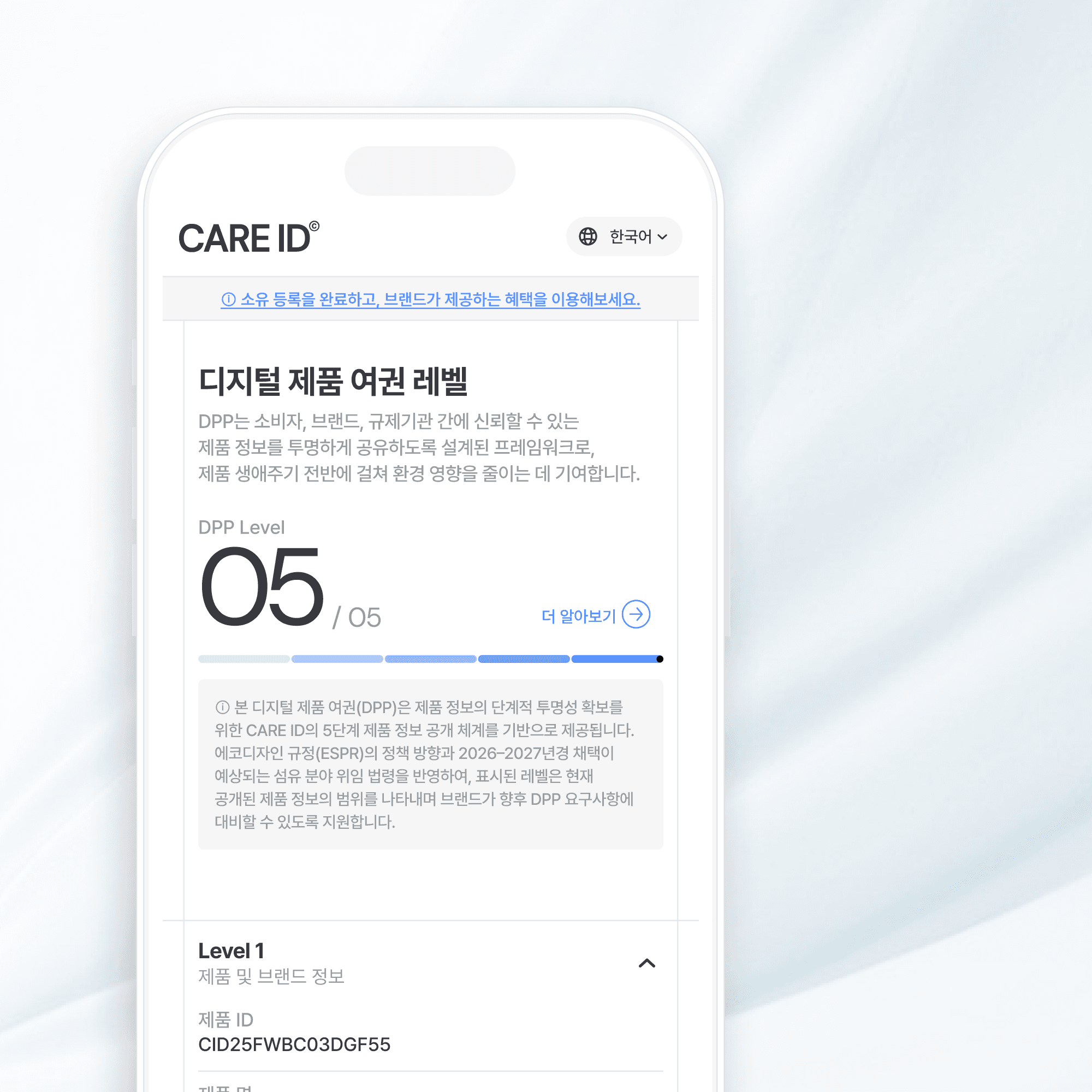 CARE ID DPP 솔루션은 제품의 생애주기를 투명하게 관리하기 위해 설계되었습니다.
