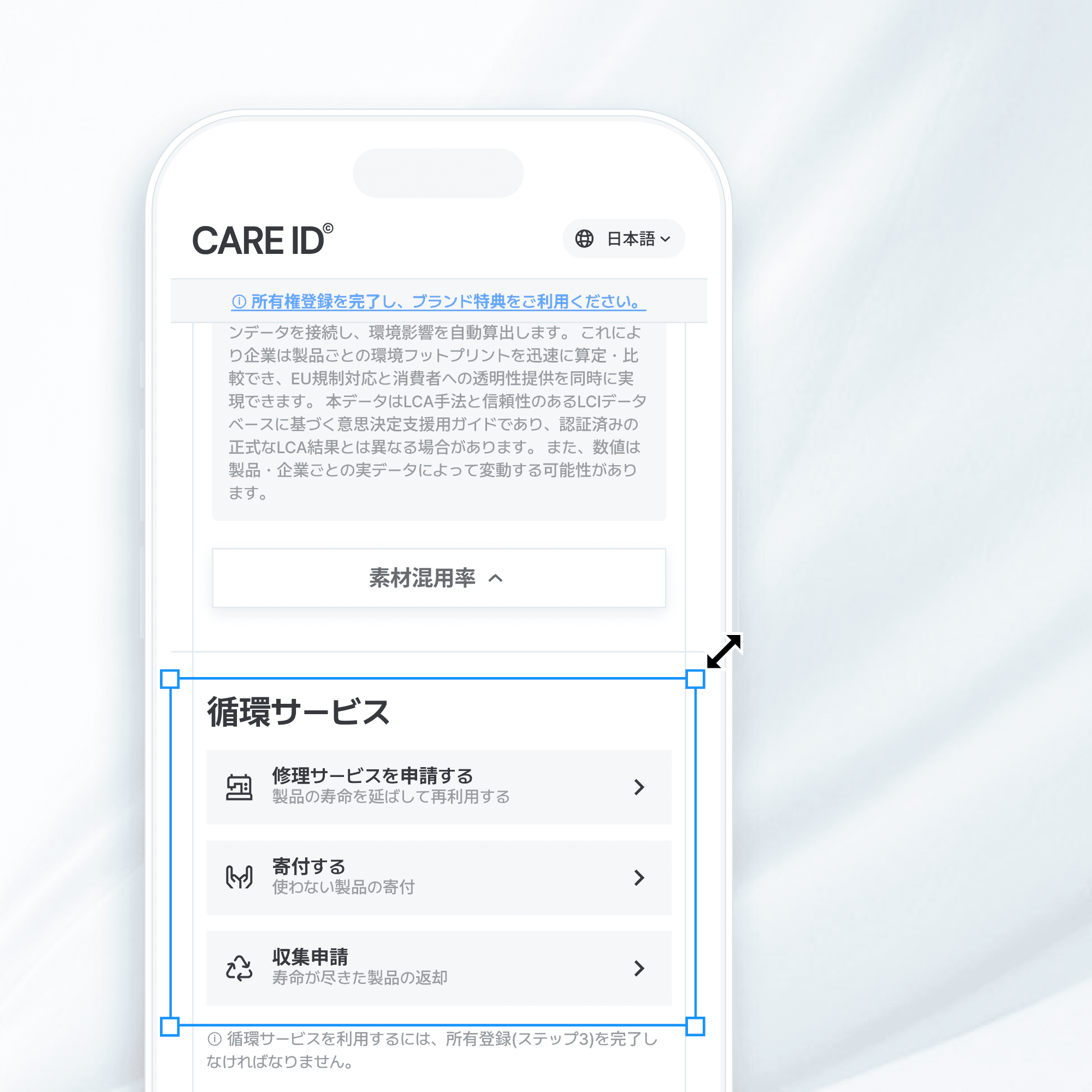 CARE IDは、ブランドのアイデンティティと特性にぴったり合ったデザインと専用ドメインを通じて、顧客に自然で一貫した体験を提供します。QRコードのスキャンからデジタル製品パスポート(DPP)ページの訪問まで、すべてのプロセスでブランドの独自の感覚を維持することで、消費者はブランドに対してより親密感を抱き、これが自社サイトの訪問増加や購入転換率の向上につながります。消費者はブランドのQRコードをスキャンすることで、完全にブランド独自の体験を感じ、CARE IDの技術的サポートはブランドの背後で透明に行われるため、消費者は混乱することなくスムーズで一体感のあるデジタル体験を享受できます。